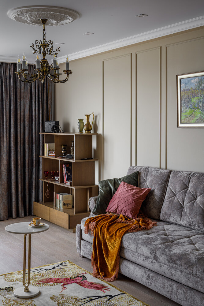 Фотография: Гостиная в стиле Классический, Эклектика, Винтажный, Квартира, Проект дня, Краснодар, Кирпичный дом, 2 комнаты, 60-90 метров, современный с элементами классики и роскоши, Яня Трубицына – фото на INMYROOM