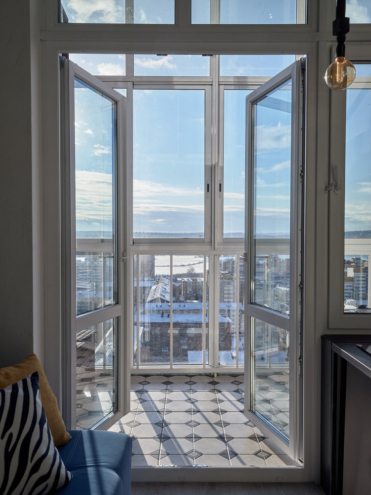 Двери поменяли, чтобы они распахивались на балкон и не занимали драгоценные сантиметры в гостиной.