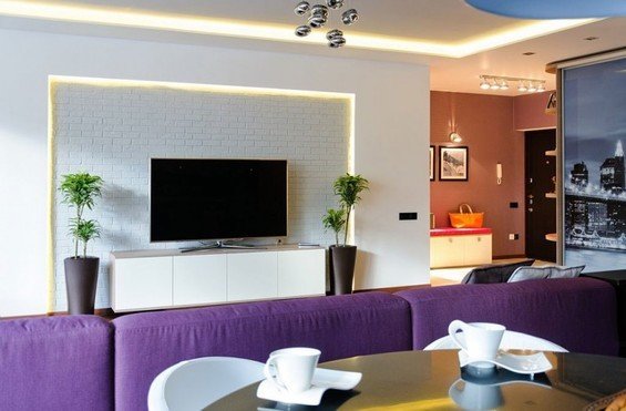 Фотография: Гостиная в стиле Современный, Хай-тек, Кухня и столовая, Ванная, Прихожая, Спальня, Квартира, Цвет в интерьере, Дома и квартиры, Белый, Синий – фото на INMYROOM