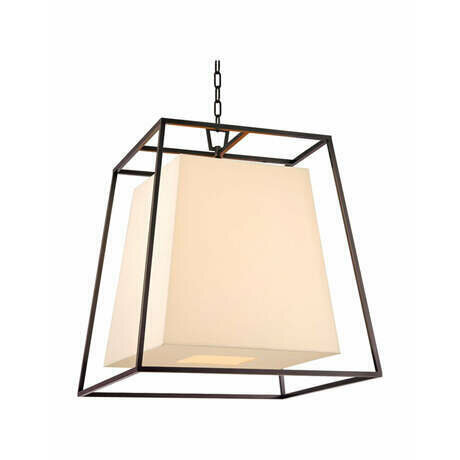 Стильная люстра "Пегги" с каркасом в темном цвете и абажуром белого цвета. Трапециевидный абажур заключен в металлическую раму. Открытое пространство между совпадающими формами подчеркнет красоту современного стиля этого осветительного прибора в любом пространстве Вашего дома. Длина цепи : 90 см. Длина провода: 120 см. Количество ламп: 4 шт. Тип цоколя: Е14 . Мощность лампы: 60W. Общая мощность : 240W