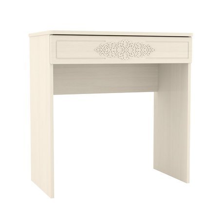 Туалетный столик - неотъемлемая часть спальни или женской комнаты. Каждая девочка, девушка или дама хочет иметь собственное пространство, свой уголок красоты, для того чтобы привести себя в порядок, нанести макияж, удобно и компактно расставить свою косметику и парфюмерию, аккуратно сложить украшения и аксессуары. Столик имеет один выдвижной ящик на телескопических направляющих без доводчиков. Мебель изготовлена из качественной ламинированной ДСП 16 мм. В оформлении фасадов МДФ применяется уникальная технология нанесения объемного узора (3-D). Гарантия 24 месяца
