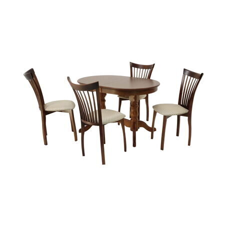 Комплект из деревянного стола Бизе на каркасе из натурального дерева и 4 стула Миранда отлично подойдет к интерьеру, выдержанному в классическом стиле. Данный комплект станет центральным элементом в гостиной, столовой зоне, на кухне, позволив создать уютное обеденное место, где смогут собираться члены дружной семьи и их гости.
