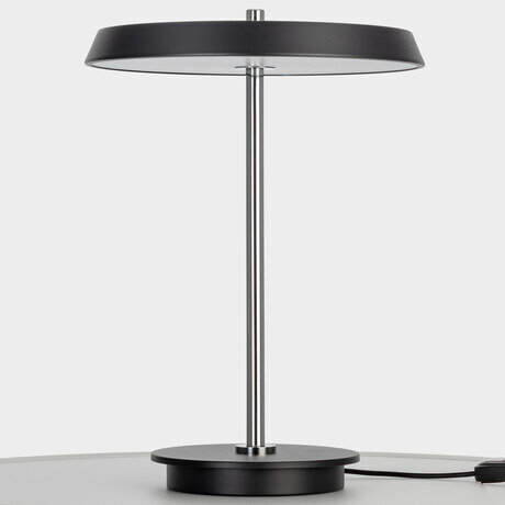Светодиодная настольная лампа Citilux LINA CL812011 выполнена в современном стиле. Светильник чёрного цвета с изящной хромированной стойкой. Металлическое снование обеспечивает устойчивость изделия. Плафон - плоский светодиодный модуль, круглой формы с оригинальным усечённым торцом.
