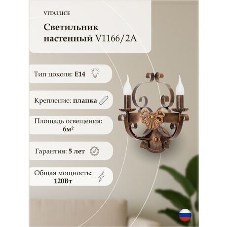 Стоимость доставки товара «Светильник настенный V1166/2A, 2xE14 макс. 60Вт» можете уточнить здесь