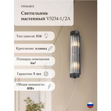 Стоимость доставки товара «Светильник настенный V5234-1/2A, 2хЕ14 макс. 40Вт» можете уточнить здесь