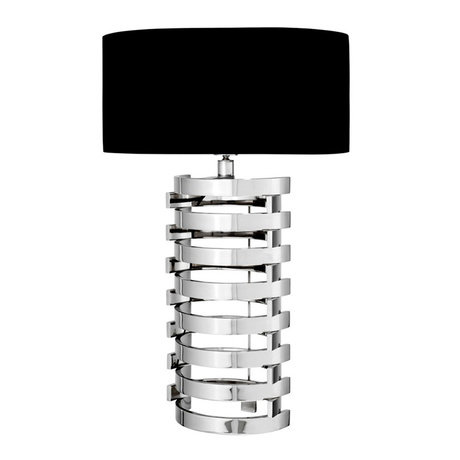 Настольная лампа Boxter L на основании из никелированного металла с оригинальным дизайном. Текстильный абажур черного цвета скрывает лампу.
