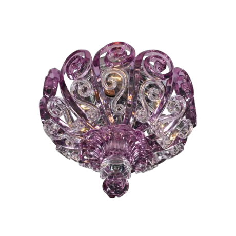 Люстра Ceiling от фабрики Iris Cristal – роскошная номерная модель из категории потолочных светильников Ceiling. Дизайнеры соединили в этой люстре богемское стекло двух видов – совершенно прозрачное и нежного фиолетового оттенка. Все элементы люстры выполнены из стекла. Центральная нижняя розетка оформлена причудливыми завитками, образующими общую, покато-обтекаемую форму изделия, понизу логически завершенную очаровательной небольшой шишечкой. Завитки полностью закрывают основание люстры, которым она крепится к потолку. Небольшая высота изделия 0,28 метра, подходит к помещениям с невысокими потолками, а благодаря относительно малому диаметру 0,36 метра, такие люстры в комнате можно использовать попарно, по трое и т.д. Стилистика изделия поддерживает классические интерьеры. Стиль: Классицизм. Материал: богемское стекло, фиолетовый, прозрачный.